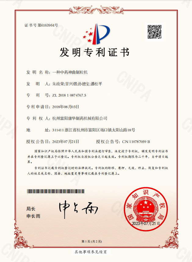 杭州富陽康華制藥機械有限公司(初創(chuàng)于2001年, 2004年后更名為:杭州富陽康華機械設(shè)備廠),是集產(chǎn)科研一體化的中藥材前處理及飲片加工設(shè)備制造企業(yè)。公司秉承以產(chǎn)品質(zhì)量為基礎(chǔ)、客戶服務為向?qū)А⒖蒲袆?chuàng)新為后勁的宗旨,在企業(yè)高速發(fā)展的同時,著力打造新產(chǎn)品研發(fā)中心,以開發(fā)現(xiàn)代、新穎設(shè)備為重任,確保產(chǎn)品立于行業(yè)先進行列,企業(yè)已擁有70余項專利...